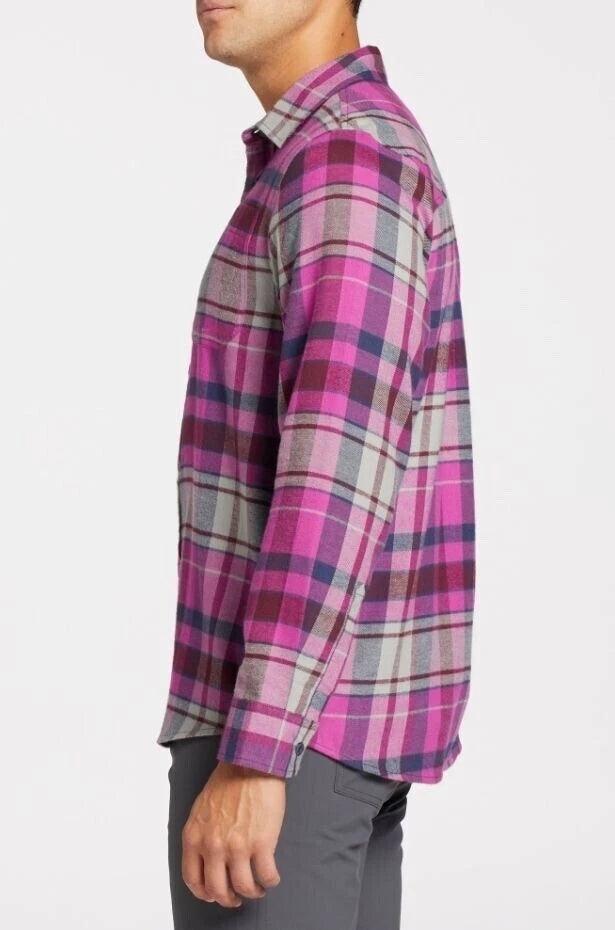 Mens Flannel Long Sleeve Shirt, Sunrise Plaid Pom Purple, Alpine Design - LARGE